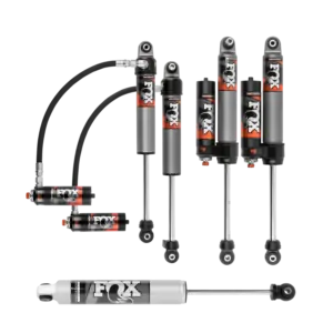 Fox Performance Elite Series 2-3″ Front/Rear Lift Shocks and IFP Steering Stabilizer for 2018-2024 Jeep Wrangler JL 2WD/4WD 2.5 Reservoir Compression Adjustable