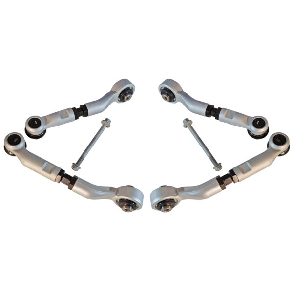 - Adjustable Links: Large 18mm threaded adjuster links provide ±1.5° camber and caster adjustment to ensure precise alignment tuning for performance driving.