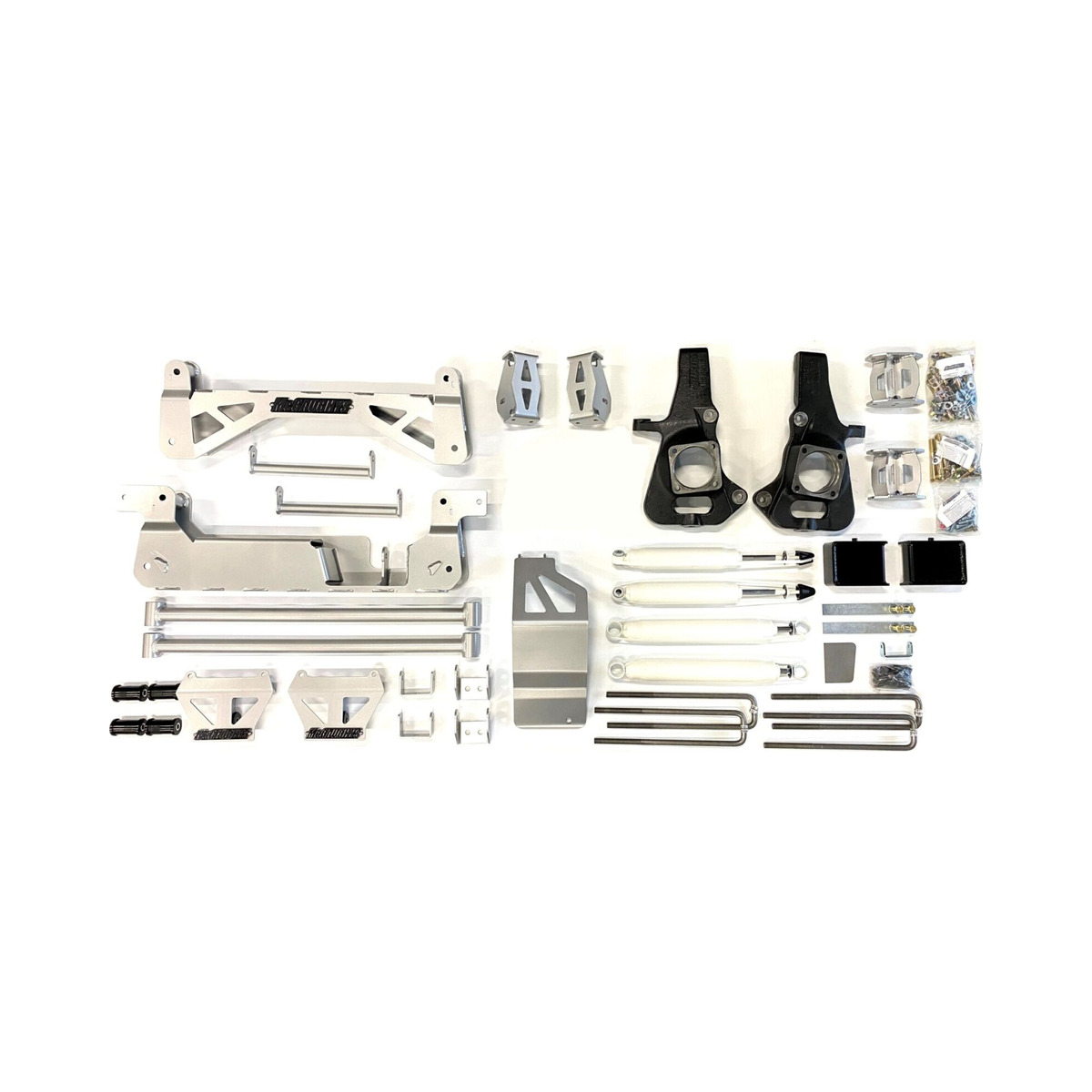 7″-9″ Premium Lift kit Lift kit comes powder-coated silver Note: The front of this kit can be adjusted up to 9″. Must add Torsion Keys #52100 (sold separately) and Upper Control Arms #52151 (sold separately). Unfortunately, we do not make any components to adjust the rear of the vehicle up. Those pieces would have to be sourced by you.