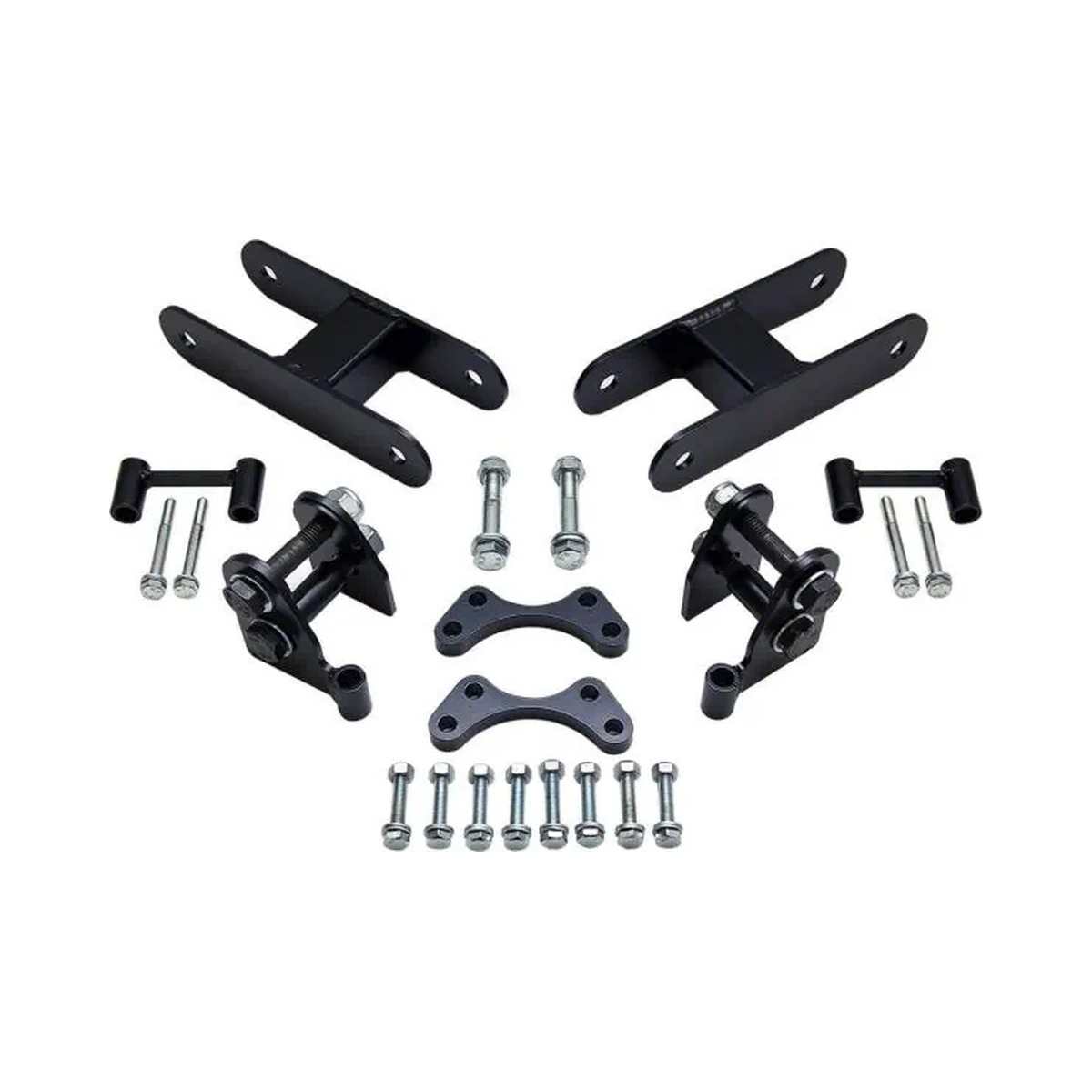 - 4WD applications use 69-3070 Includes lower front strut extensions, rear shackles and rear shock extensions.