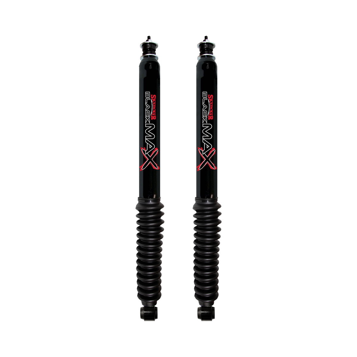 Skyjacker® twin tube Black MAX shocks have increased fluid capacity and utilize “foam-cell” technology. When the shock is working hard and gets hot, the foam-cell insert compresses to compensate for oil expansion which maintains consistent MAX Performance throughout the operating temperature range of the shock. The foam-cell design also eliminates air inside the shock which allows for mounting in any direction. Arc-welded end mounts and select specific valving give this shock absorber MAX value.