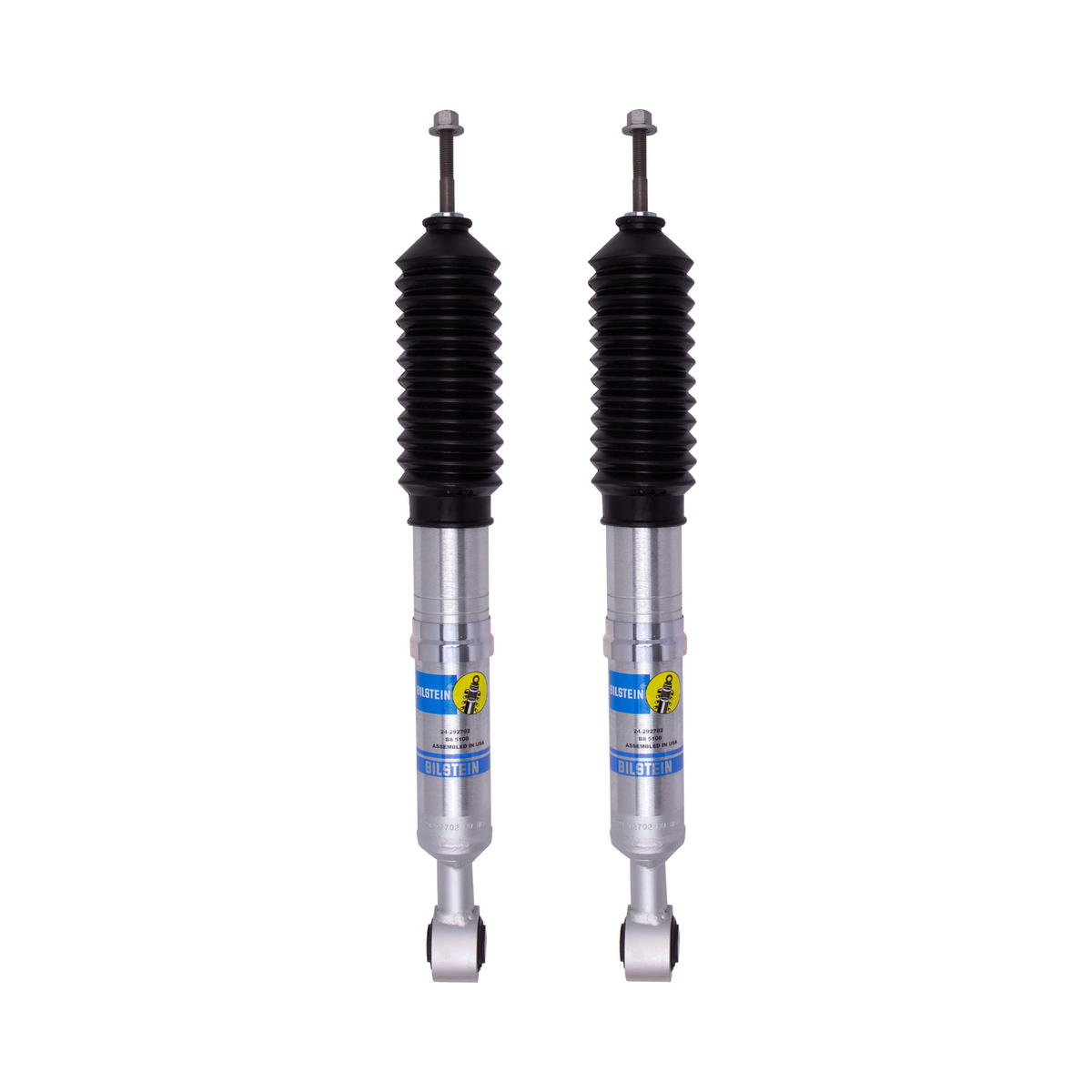 Bilstein B8 5100 (Ride Height Adjustable) shock absorbers are designed for trucks and SUVs with a front OE coilover style suspension. Multiple snap-ring grooves in the body allow for different spring seat positions, providing 0-2.75 inches of front lift with OE springs (depending on application). The monotube shock absorbers feature a 46mm digressive piston a with self-adjusting deflective disc valve setting. Bilstein B8 5100 (Ride Height Adjustable) shock absorbers provide increased wheel travel and improved handling. Utilizing a B8 5100 (Ride Height Adjustable) shock absorber is the easiest way to level out your vehicle.