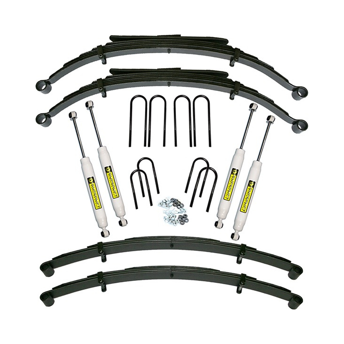 Superlift Superide 4″ leaf springs feature tapered leaves, bolt-style spring clips and Teflon inserts between each leaf to ensure a quiet and smooth ride. Durable Poly spring bushings, replacement front and rear U-bolts, brake hose relocation brackets complete the lift. The kit is packaged complete with Superlift Superide shocks. Options include single and dual steering stabilizers, and a 4″ raised steering arm or 4″ drop drag link.