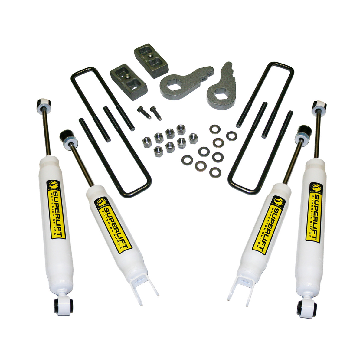 Superlift’s Level 1 Lift Kits provide a moderate lift for the front and rear suspension and are packaged complete with shocks. Priced much less than traditional 4 & 6″ lifts, Level 1 Lift Kits are perfect for those looking for more than a leveling kit offers but aren’t ready to bite off the cost of a full blown lift kit. Level 1 Lift Kits will provide your truck with the clearance needed to run larger tires and instantly transform your truck from stock to stunning. Level 1 Lift Kits are backed by Superlift’s Industry Best Lifetime Warranty and 60-day Satisfaction Guarantee. What are you waiting for? Order yours Level 1 Lift Kit today.