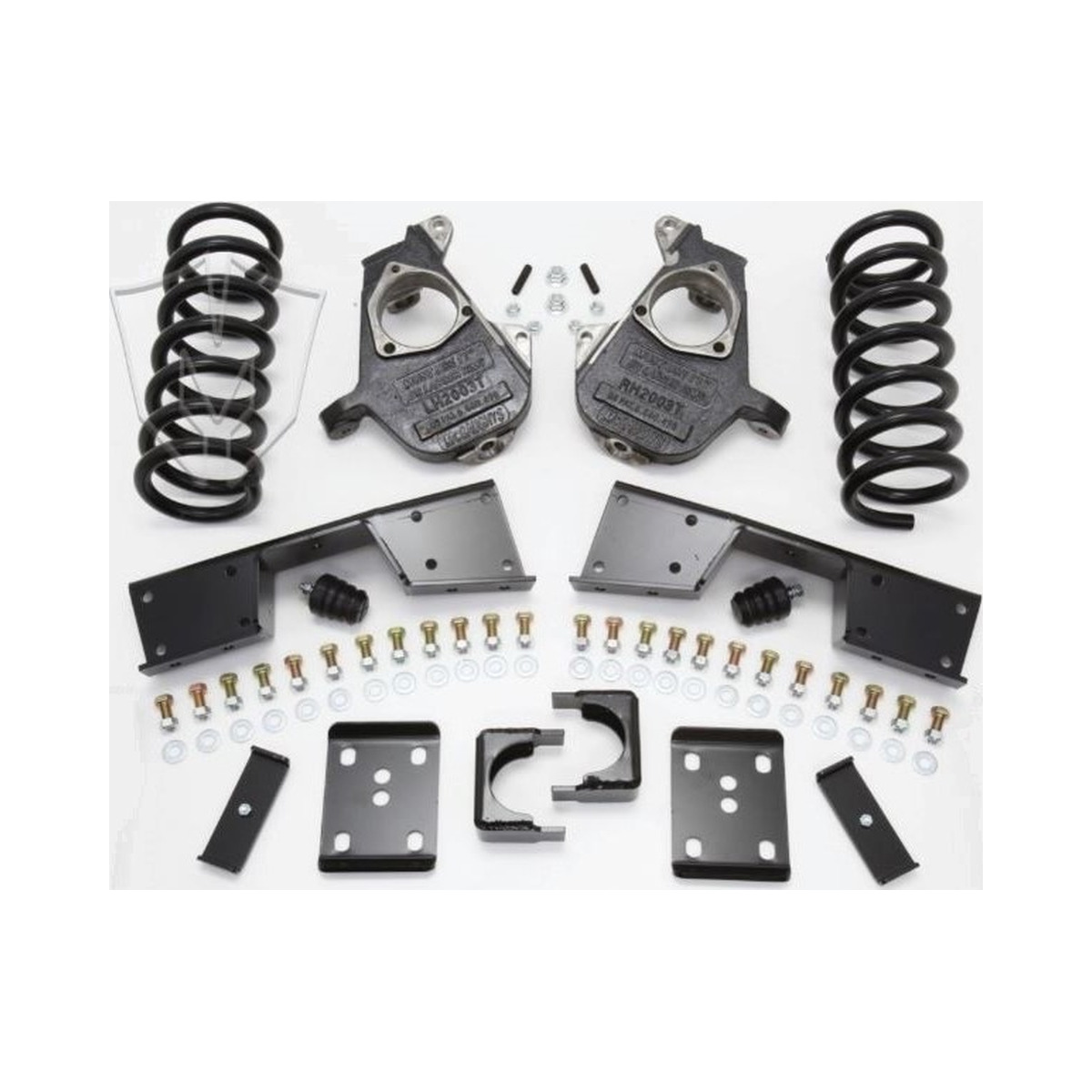 Kit Includes: (2) Drop Spindles, (2) Drop Coils, (2) C-Notch Plates, (2) Flip Kit Axle Saddles, (2) Flip Kit U-Bolt Plates, (2) Flip Kit Leaf/U-Bolt Retainer Plates, (2) Bump Stops, & Hardware
