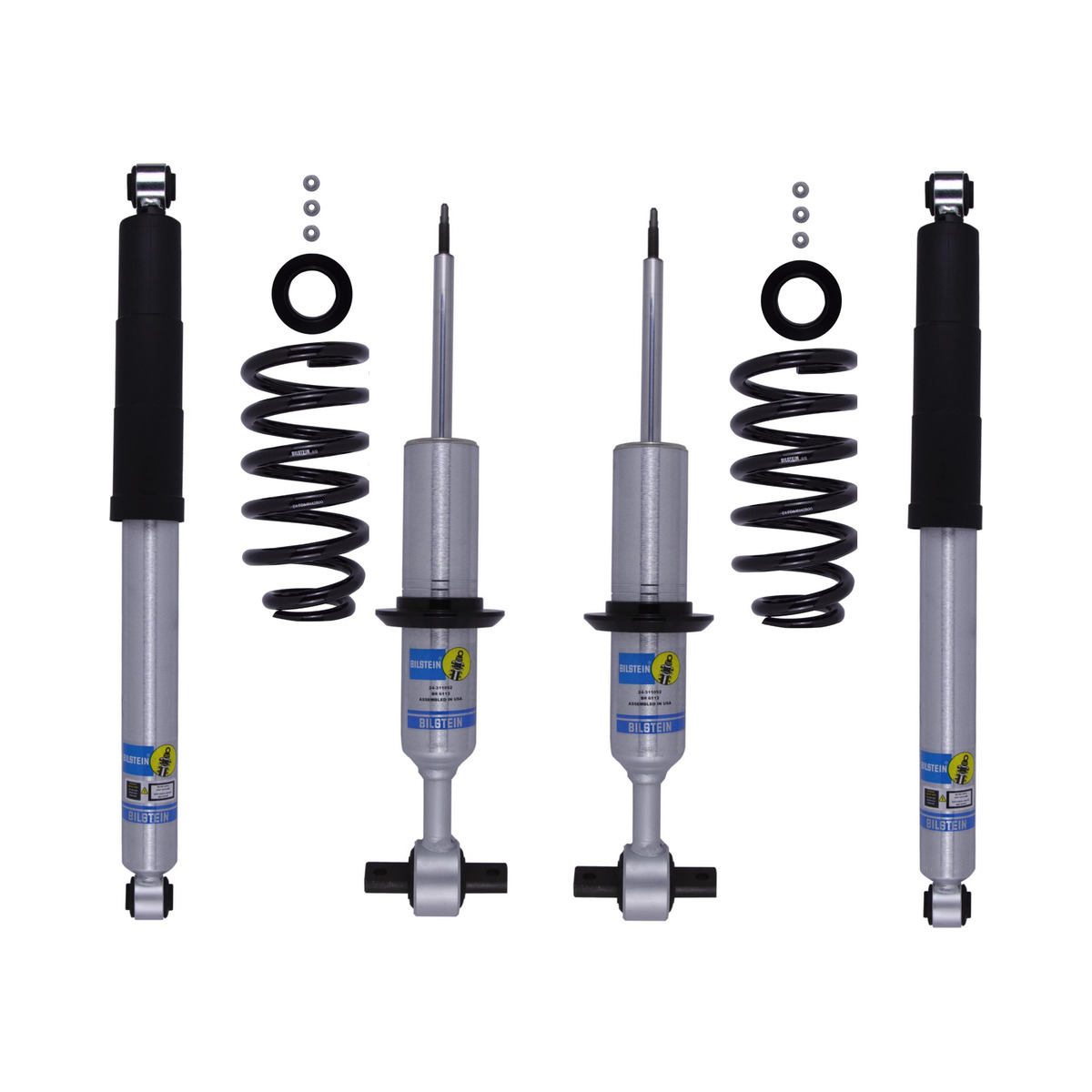 Bilstein B8 6112 leveling kits are designed to provide more ground clearance, allow for larger tires, and increase wheel travel. Multiple snap-ring grooves in the body allow for different spring seat positions, providing 0-2.75 inches of front lift (depending on application). These kits consist of (2) 60mm shock absorbers combined with (2) custom matched cold wound coil springs and (2) billet aluminum spring seats. The large 60mm digressive piston allows for increased damping control for optimal on-road and off-road capabilities. Experience the legendary Bilstein off-road experience with the best direct fit spring and shock kit for your light truck or SUV.