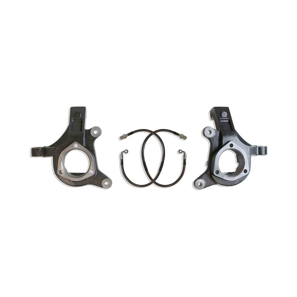 Constructed from high-quality ductile steel and finished with a durable e-coating, these spindles ensure exceptional durability and resistance against the elements, making them ideal for challenging conditions. The kit includes extended brake lines to maintain optimal braking performance even with the increased lift height.