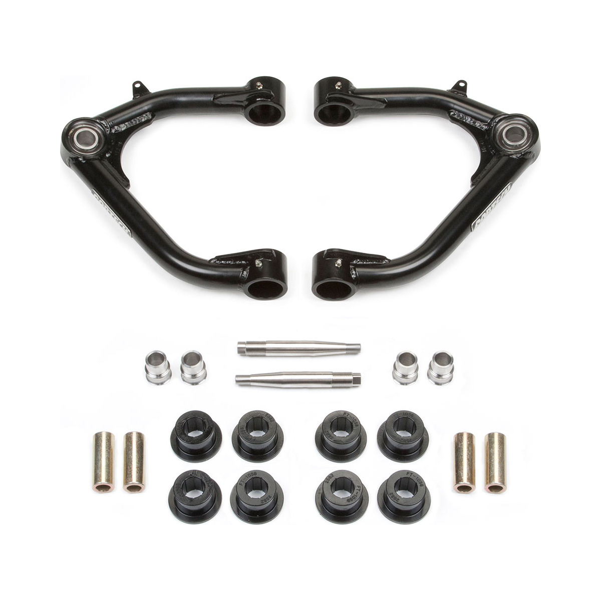 Fabtech uses 17-4 Stainless steel for the misalignments that provide proper clearance of the 1″ Uniballs throughout the travel range. On the frame side of the upper arms, there are quality urethane bushings that help reduce road noise while providing longevity.