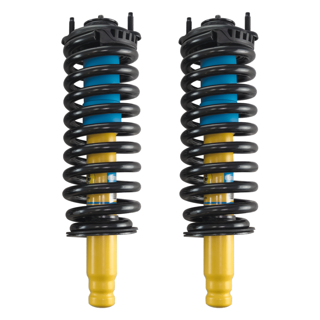 Each assembly pairs a Bilstein 4600 front shock with a high-quality OE replacement coil spring (such as Moog or equivalent), pre-assembled with new top mounts and hardware.