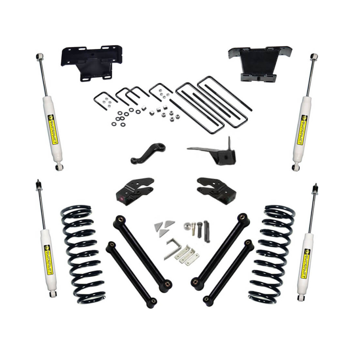 - Includes rear lift blocks and front and rear Superlift Superide shock absorbers