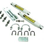 The Superlift Dual Steering Stabilizer kit includes dual Superlift cylinders, plus all required mounting hardware. The Superlift cylinders feature increased oil capacity, for cooler operating temperatures and less fade, plus valving tailored to meet the demands of heavier tires/wheels and aggressive terrain.