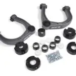 Take your Bronco higher with the 4″ Adventure Series lift kit from Zone Offroad. Designed to maintain ride quality, handling and performance with room for larger tires, Kits build off the factory suspension geometry and add 2-piece strut spacers, Adventure Pro series upper control arms and all the necessary hardware to complete the install allowing clearance for 35-37″ tires. Get the look and performance with Zone Offroad.