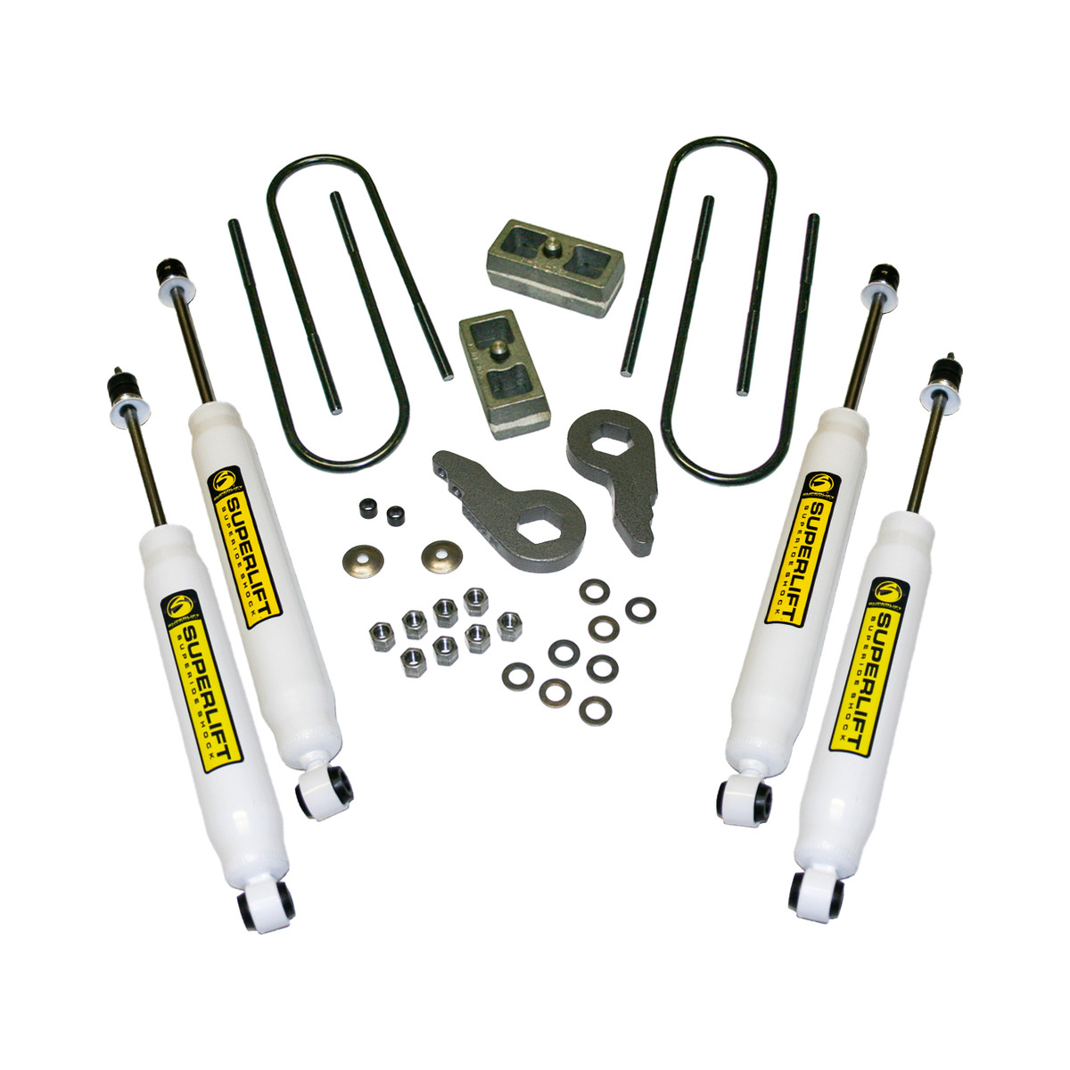 Superlift’s Level 1 Lift Kits provide a moderate lift for the front and rear suspension and are packaged complete with shocks. Priced much less than traditional 4 & 6″ lifts, Level 1 Lift Kits are perfect for those looking for more than a leveling kit offers but aren’t ready to bite off the cost of a full blown lift kit. Level 1 Lift Kits will provide your truck with the clearance needed to run larger tires and instantly transform your truck from stock to stunning. Level 1 Lift Kits are backed by Superlift’s Industry Best Lifetime Warranty and 60-day Satisfaction Guarantee. What are you waiting for? Order yours Level 1 Lift Kit today.