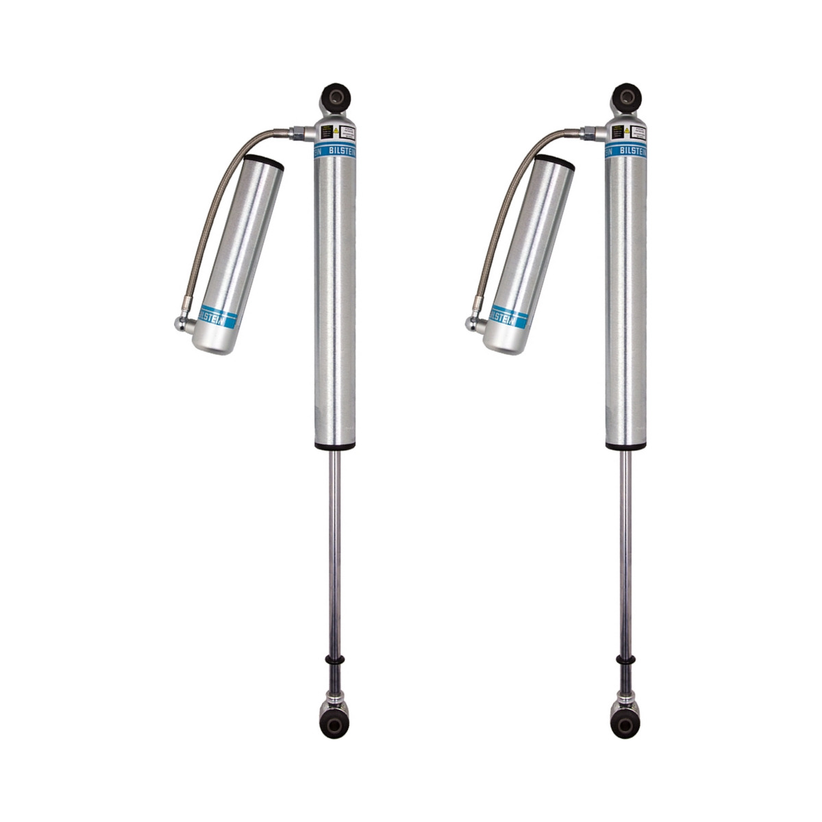 Bilstein B8 5160 remote reservoir shock absorbers are designed as a direct fit solution for lifted trucks and SUV’s. The remote reservoir will offer increased cooling capacity and wheel travel to optimize overall performance compared to a traditional shock absorber. These shock absorbers feature a monotube design for consistent fade free performance and utilize velocity sensitive digressive valve settings which are tuned for each specific application. Each shock absorber is fitted with a unique 360 degree swivel banjo hose fitting, providing a clean, low profile installation. B8 5160 remote reservoir shock absorbers will increase overall durability of your vehicle allowing you to conquer the harshest of off-road environments.