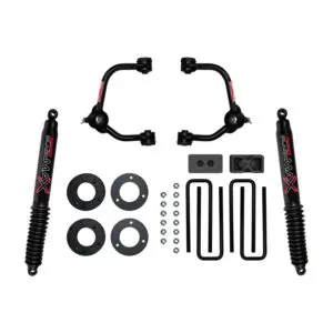 Bilstein B8 6112 leveling kits are designed to provide more ground clearance, allow for larger tires, and increase wheel travel. Multiple snap-ring grooves in the body allow for different spring seat positions, providing 0-2.75 inches of front lift (depending on application). These kits consist of (2) 60mm shock absorbers combined with (2) custom matched cold wound coil springs and (2) billet aluminum spring seats. The large 60mm digressive piston allows for increased damping control for optimal on-road and off-road capabilities. Experience the legendary Bilstein off-road experience with the best direct fit spring and shock kit for your light truck or SUV.