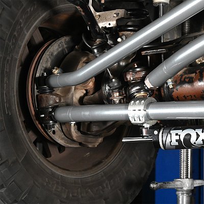 Engineered for maximum articulation, the heavy duty tie rod is bent to clear sway bar mounts, differential cover, and steering pitman arm