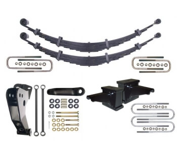 This 6″ system is designed to lift your Ford Super Duty. 6″ front leaf springs provide room for 35” tires. This system use a custom progressive pack for ulitmate ride quaility, while providing 6″ of lift. This system comes with a 1.75″ bump stop spacer (not pictured) to prevent spring fatigue during the suspension cycle. Also included in this kit is 6” rear block kit, with 17” u-bolts for a leveled stance. This system is the ideal for all Super Duty’s.