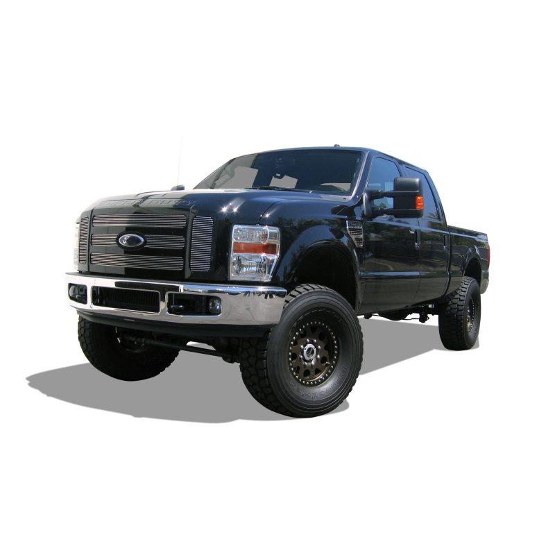• Retains factory block with this system. Using a F350 factory block with sit the truck 1/2 – 34″ lower than stock, or F250 factory block with sit the truck level or 1/2″ higher pending how it came out of the factory.