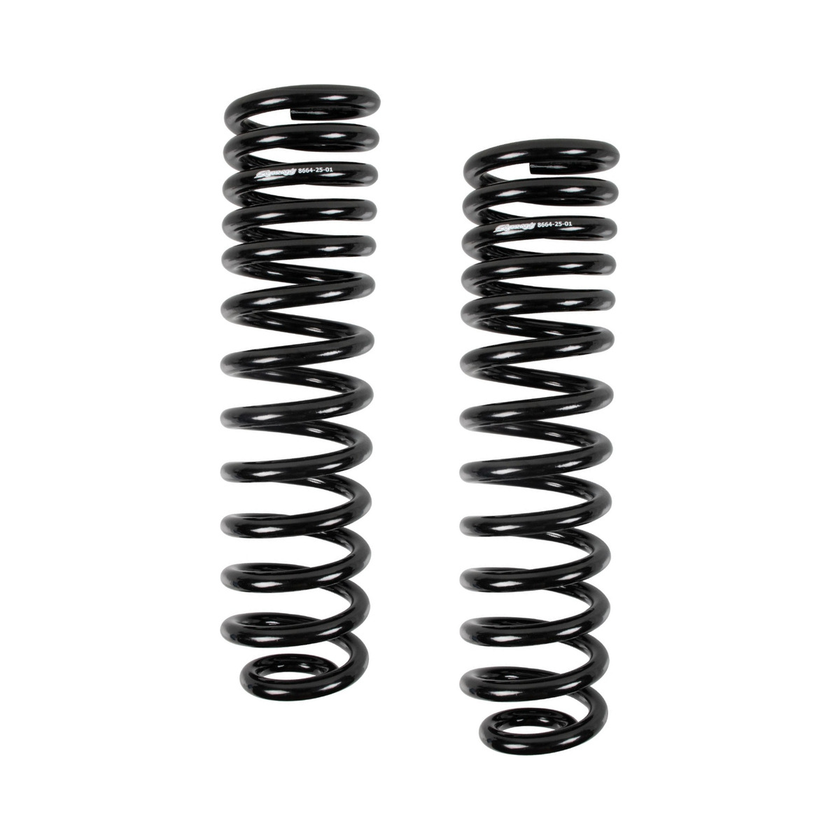 The Synergy Ford Super Duty F-250 / F-350 / F-450 / F-550 / F-600 front leveling springs lift the front of the truck 2.5”. The springs are progressively wound to provide a soft ride while increasing bottoming resistance. When used in the Synergy Leveling Kit, they provide 9 ¾“ of travel.