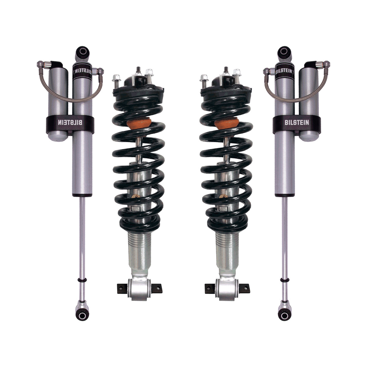 Includes: 2 Front Assembled Coilovers (47-294301 – Bilstein Shocks and Coils Assembled with new top mounts, bushings, hardware), 2 Bilstein 5160 0-2″ Lift Rear Shocks with Remote Reservoirs 24-294225