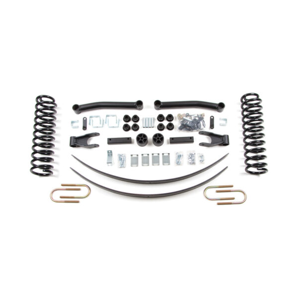 - Front coil springs designed to give a 4.5′ of lift while maintaining an factory style ride