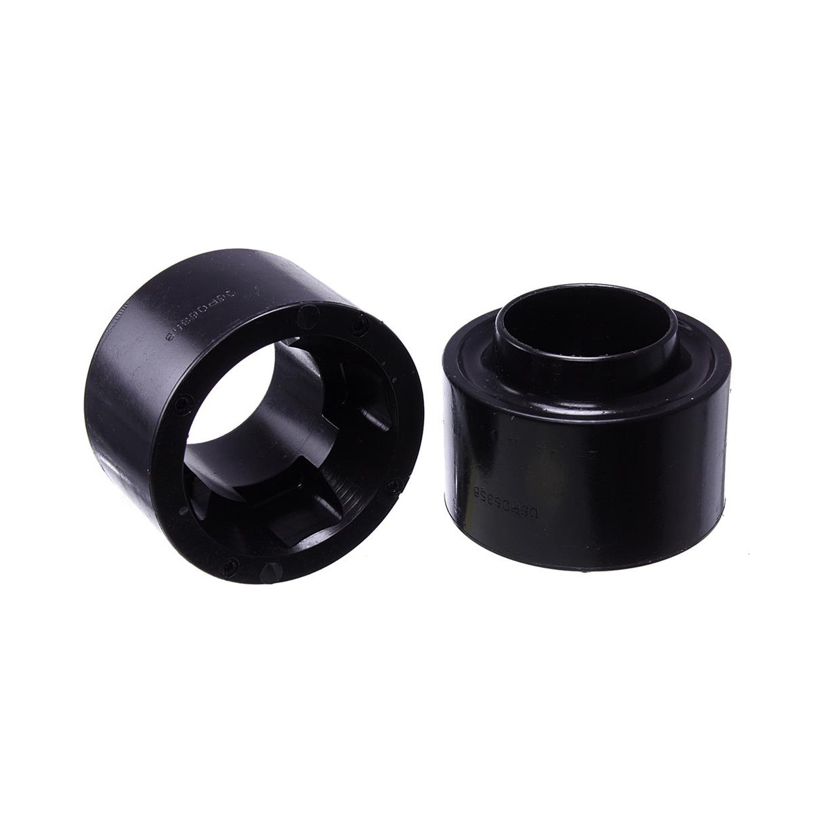 The Energy Suspension Front Coil Spring Spacer Lift Set fits 2018-2018 Jeep Wrangler JK. Key configuration details include Black Hyper-Flex performance polyurethane construction and 1.75 in. Lift. It is designed to add lift height with a durable polyurethane spacer design.