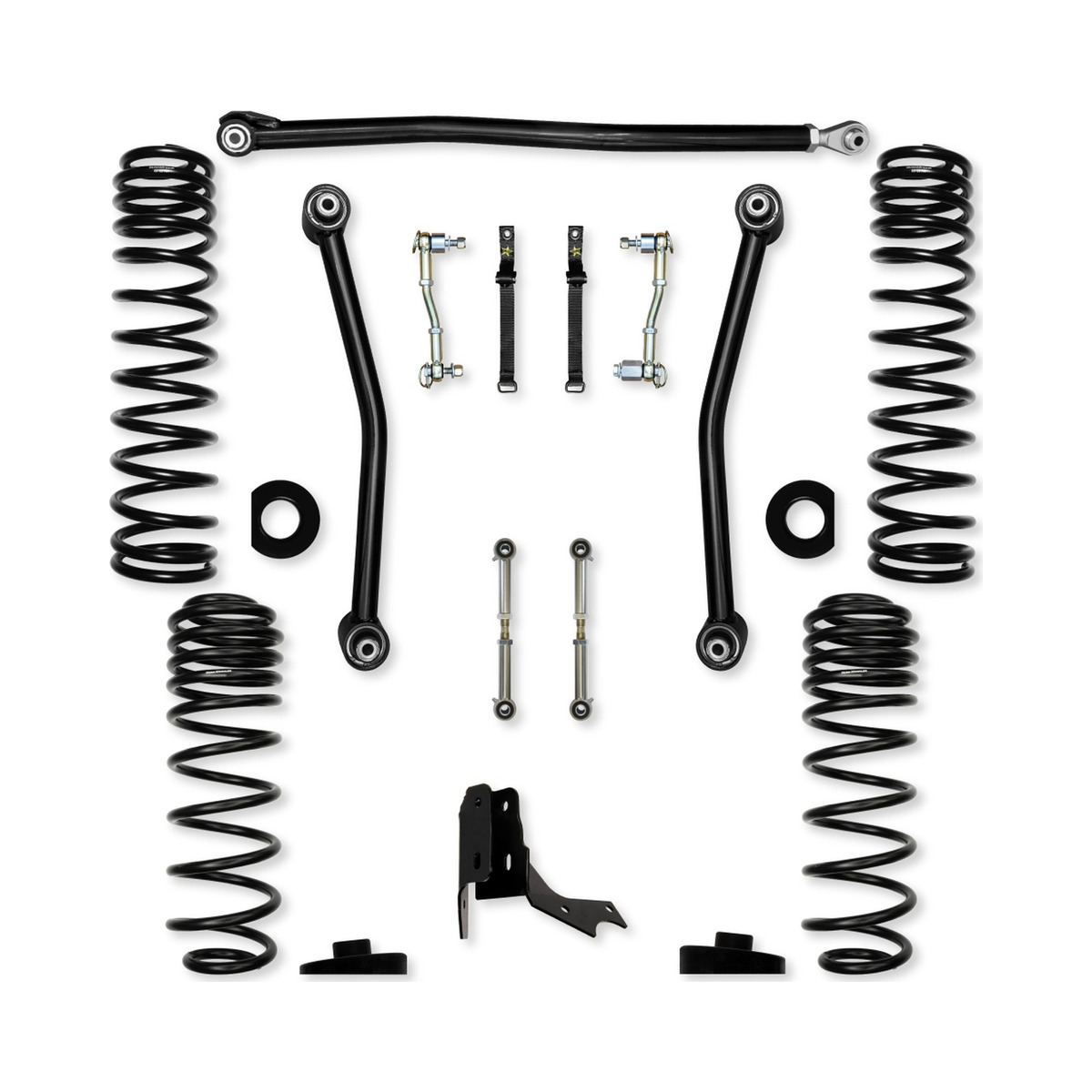 All Rock Krawler JT systems include correction pads that help minimize the spring bow inherent in the factory set up. The provided track bar geometry corrections, both front and rear, lets you perfectly center axles so there is no compromise in handling.