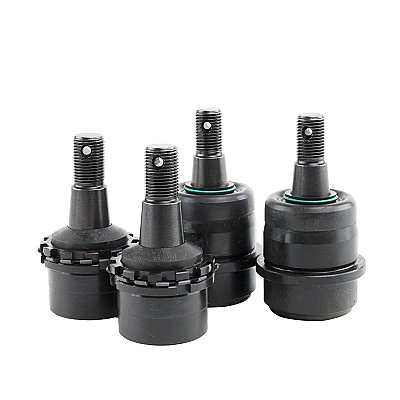 Available in knurled and non-knurled versions to fit all vehicles regardless of what type of ball joints were installed previously. Lower ball joint bearing surfaces are CNC machined from 4140 steel, heat treated, induction hardened, and ferritic nitrocarburized to make these the longest lasting, longest wearing ball joints on the market. Kit includes all 4 ball joints to service one Jeep and the adjuster tool for adjusting the preload on the lower ball joints.