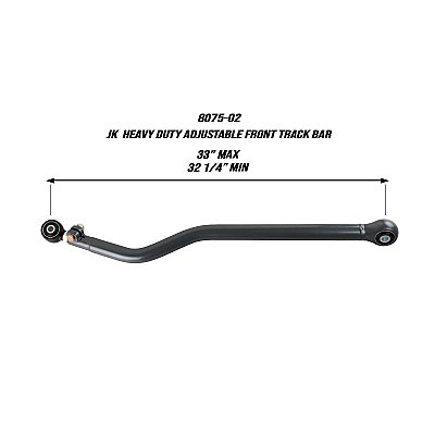 The Synergy Jeep JK / JKU Adjustable Front Track Bar is used to help center your axles when running a suspension lift. This track bar also significantly improves lateral stiffness over stock to hold up to the abuse of large tires and aggressive off road driving. Length is adjustable on the vehicle to make adjustments a breeze. Uses maintenance free Synergy Dual Durometer Bushings on both ends. Designed to clear most aftermarket differential covers.