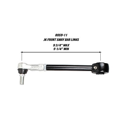 NOTE: Rubicon models with electronic front sway bar disconnects are susceptible to the front sway bar links over rotating with long travel shocks. We recommend running limit straps, shorter shocks, or with enough lift, purchasing the rear 8060-11 sway bar links for use in the front instead.