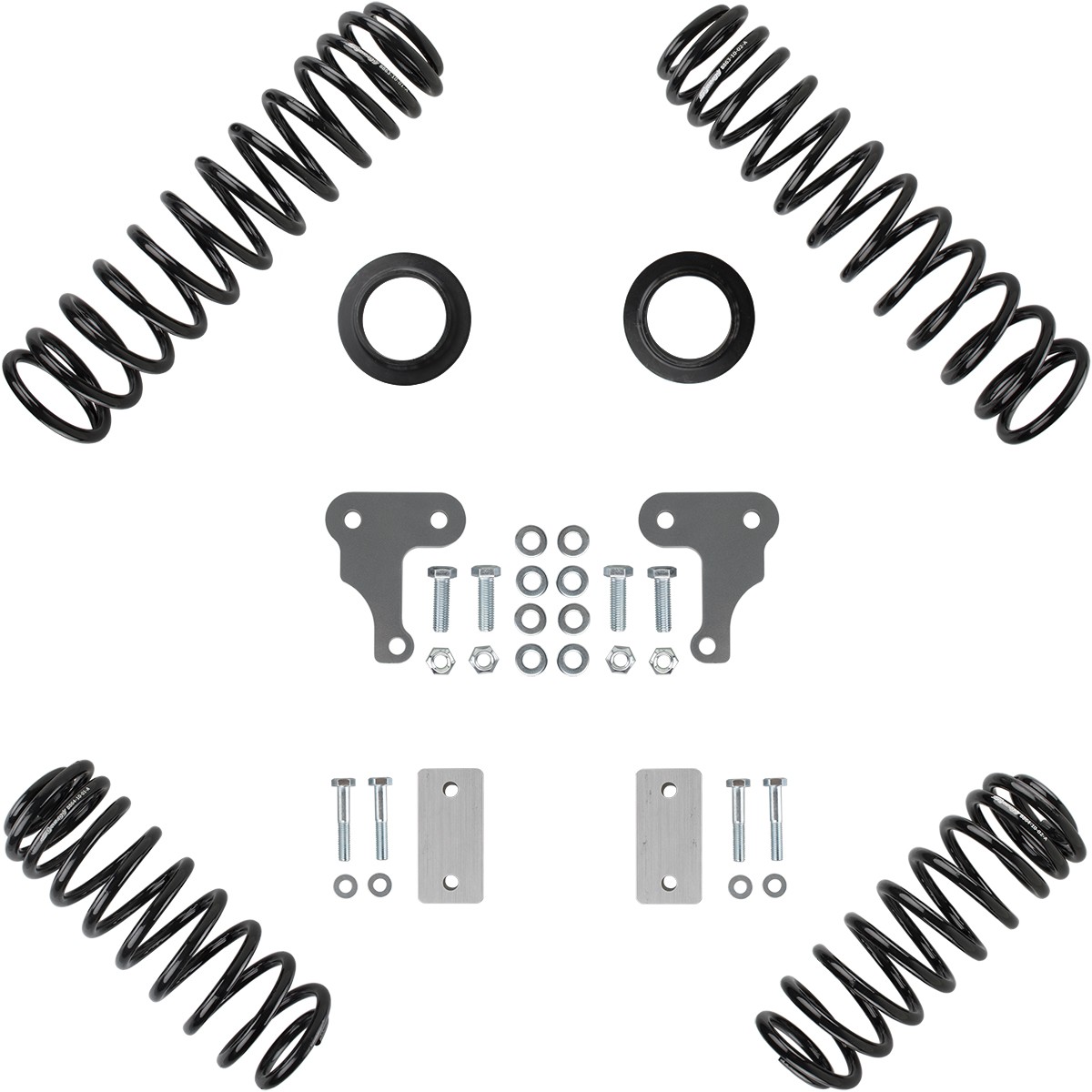 | (1) 8863-10 Front Coil Springs (JL / JLU / JT), Pair (1) 8864-10 Rear Coil Springs (JL / JLU), Pair (1) 8886-02 Rear Sway Bar Drop Brackets (1) 8855-02 Front Sway Bar Link Relocation Brackets |