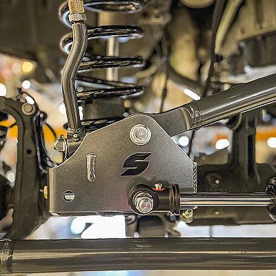 - Securely indexes to the factory track bar bracket and reinforces with additional attachment points.