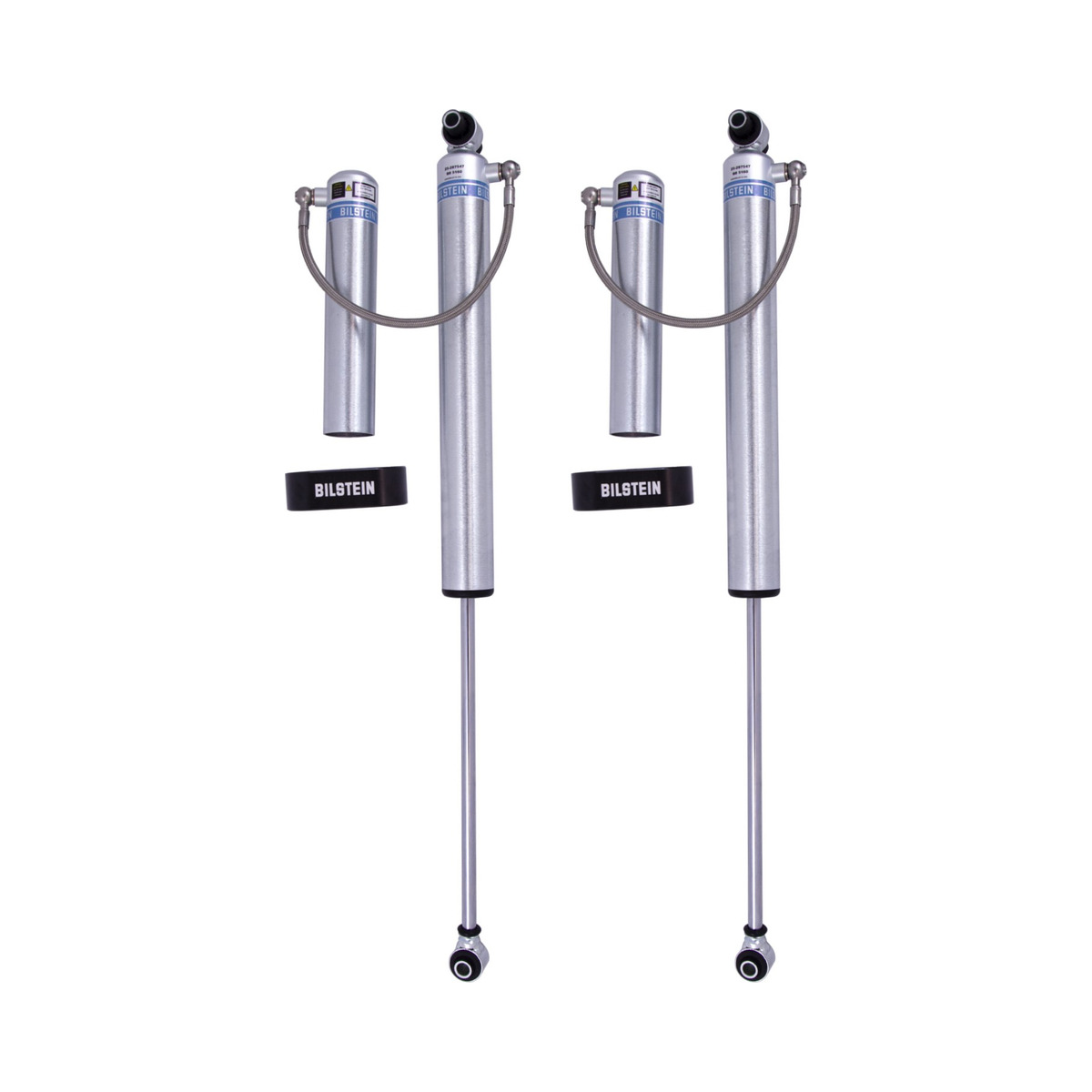 Bilstein B8 5160 remote reservoir shock absorbers are designed as a direct fit solution for lifted trucks and SUV’s. The remote reservoir will offer increased cooling capacity and wheel travel to optimize overall performance compared to a traditional shock absorber. These shock absorbers feature a monotube design for consistent fade free performance and utilize velocity sensitive digressive valve settings which are tuned for each specific application. Each shock absorber is fitted with a unique 360 degree swivel banjo hose fitting, providing a clean, low profile installation. B8 5160 remote reservoir shock absorbers will increase overall durability of your vehicle allowing you to conquer the harshest of off-road environments.