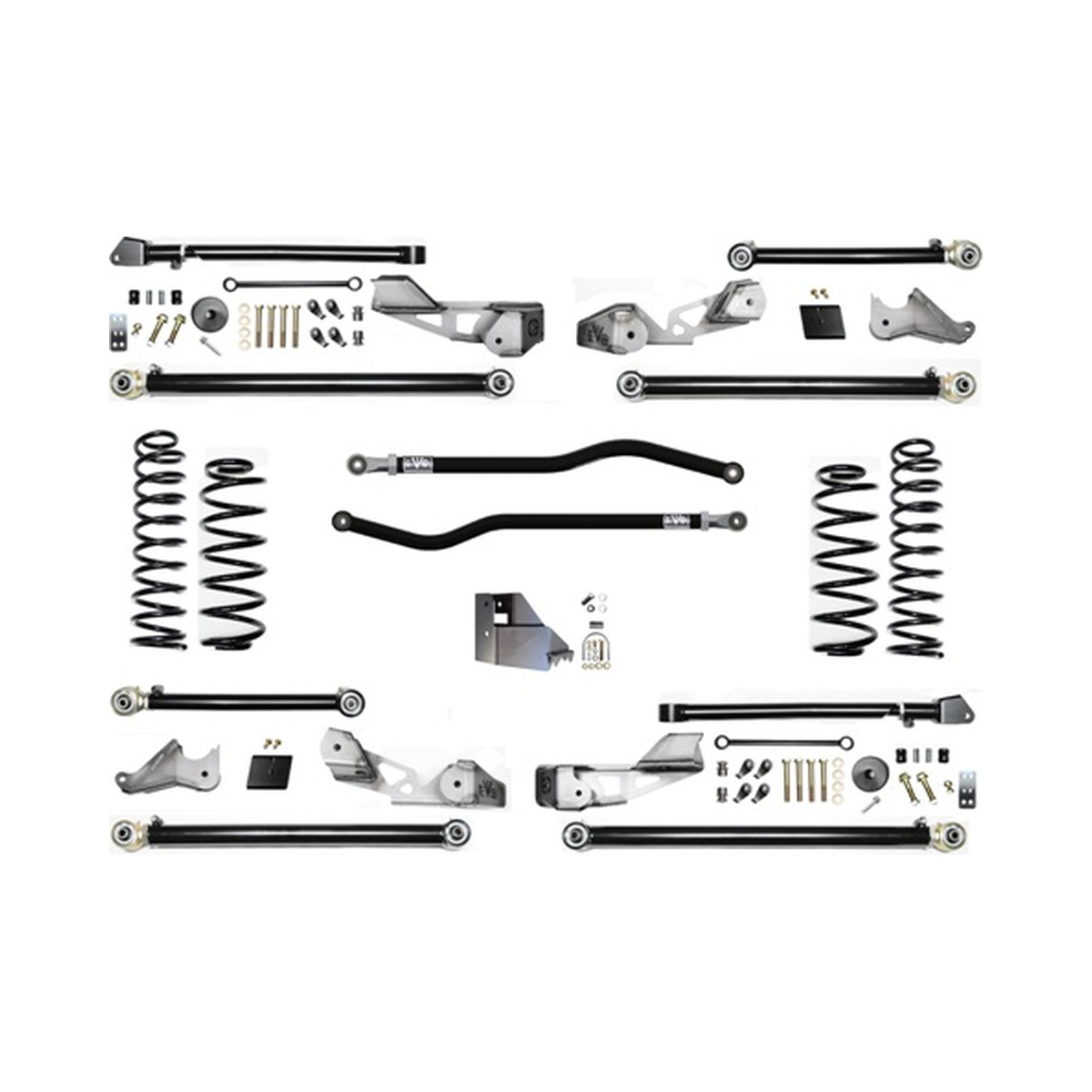 These kits come with a set of 3.5 Inch Plush Ride Lift springs specific to each corner which will keep the Jeep Wrangler JLU more level side to side and will maintain a unique and compliant ride quality. EVO MFG Long Arm joints feature Johnny Joints on both ends of the control arms for restriction free articulation and motion with no wearable and limited bond rubber. All long arms come complete with EVO1 on vehicle adjuster making alignment a snap allowing for the ability to adjust control arm lengths while completely installed on the vehicle at all times.