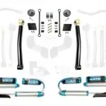 Stage 2 kits includes Stage 1 components as well as EVO MFG Enforcer JL Front Lower Adjustable Control Arms to allow for caster adjustments.