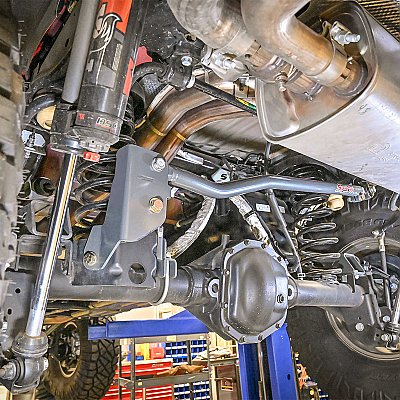 - Improves rear track bar geometry to reduce the rear end wag experienced with a steep track bar angle