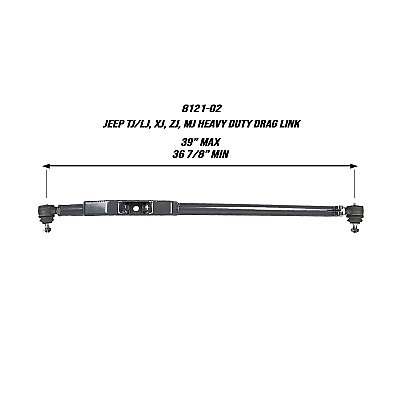More information: www.p65warnings.ca.govBe the first to review “Synergy Heavy Duty Front Drag Link for 97-06 Jeep Wrangler TJ/LJ, 84-01 XJ, 93-98 ZJ, 86-92 MJ”