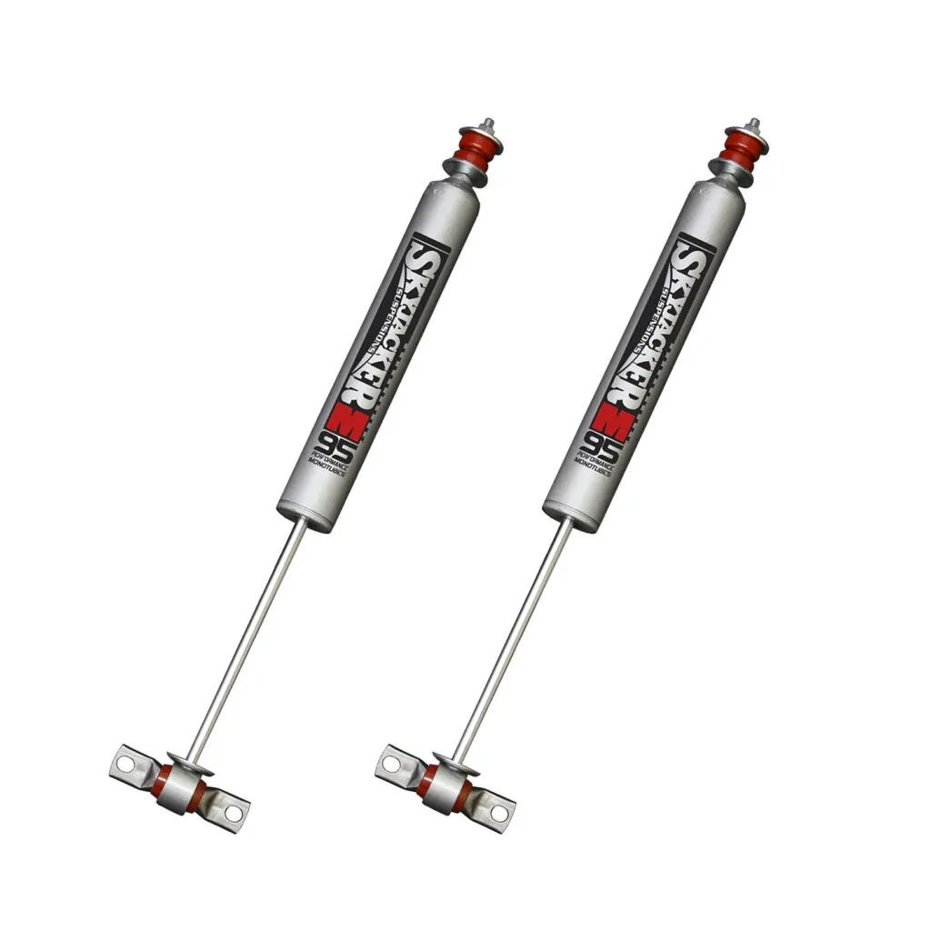 Skyjacker’s M95 Monotube Shocks are the ultimate shock absorbers for light trucks, Jeeps and SUV’s. This single tube design helps operating temperatures stay cooler under extreme conditions. The high pressure nitrogen gas and floating piston technology combine to create the fastest responding shock ever.