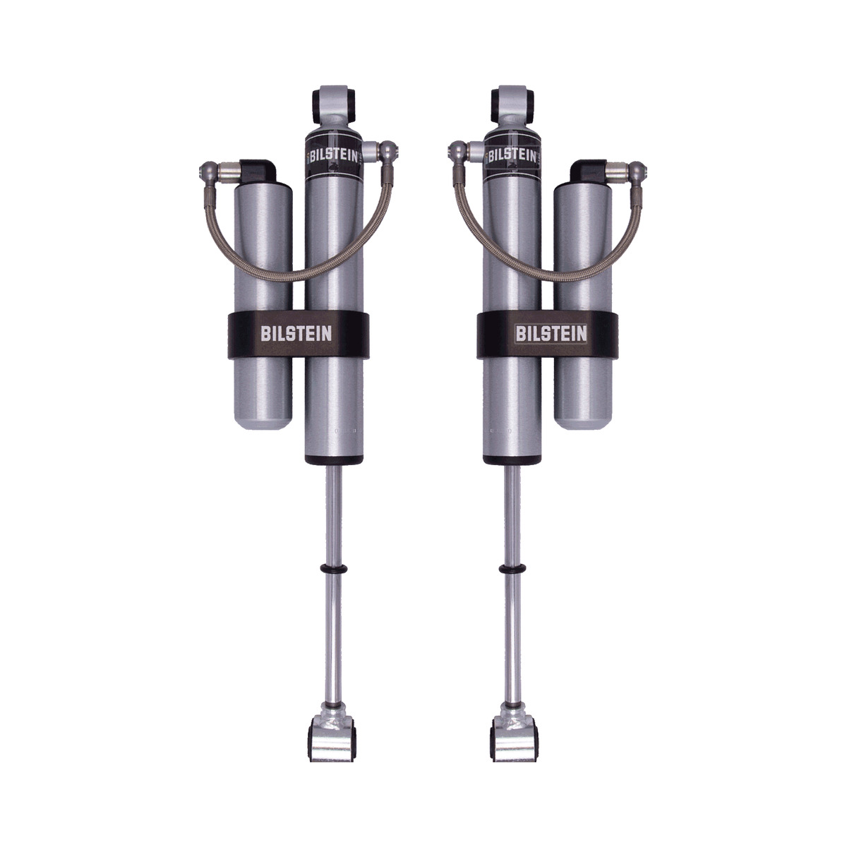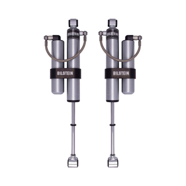Bilstein B8 5160 remote reservoir shock absorbers are designed as a direct fit solution for lifted trucks and SUV’s. The remote reservoir will offer increased cooling capacity and wheel travel to optimize overall performance compared to a traditional shock absorber. These shock absorbers feature a monotube design for consistent fade free performance and utilize velocity sensitive digressive valve settings which are tuned for each specific application. Each shock absorber is fitted with a unique 360 degree swivel banjo hose fitting, providing a clean, low profile installation. B8 5160 remote reservoir shock absorbers will increase overall durability of your vehicle allowing you to conquer the harshest of off-road environments.
