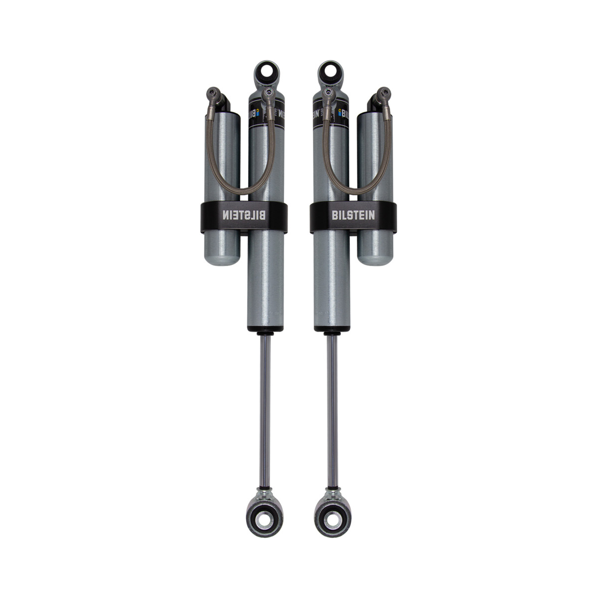 Bilstein B8 5160 remote reservoir shock absorbers are designed as a direct fit solution for lifted trucks and SUV’s. The remote reservoir will offer increased cooling capacity and wheel travel to optimize overall performance compared to a traditional shock absorber. These shock absorbers feature a monotube design for consistent fade free performance and utilize velocity sensitive digressive valve settings which are tuned for each specific application. Each shock absorber is fitted with a unique 360 degree swivel banjo hose fitting, providing a clean, low profile installation. B8 5160 remote reservoir shock absorbers will increase overall durability of your vehicle allowing you to conquer the harshest of off-road environments.