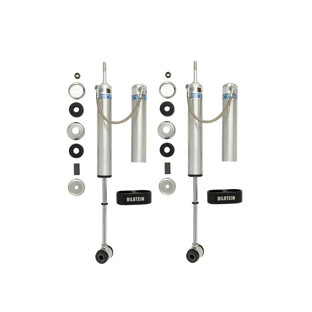 Bilstein B8 5160 remote reservoir shock absorbers are designed as a direct fit solution for lifted trucks and SUV’s. The remote reservoir will offer increased cooling capacity and wheel travel to optimize overall performance compared to a traditional shock absorber. These shock absorbers feature a monotube design for consistent fade free performance and utilize velocity sensitive digressive valve settings which are tuned for each specific application. Each shock absorber is fitted with a unique 360 degree swivel banjo hose fitting, providing a clean, low profile installation. B8 5160 remote reservoir shock absorbers will increase overall durability of your vehicle allowing you to conquer the harshest of off-road environments.