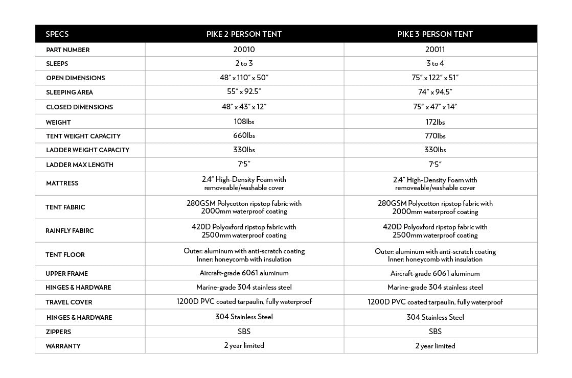 Body Armor Sky Ridge Pike 2XL Roof Top Tent. Part number 20011.