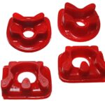 For front wheel drive vehicles. These polyurethane inserts are thoroughly tested to add support and stability to the existing OEM motor mount system. They both restore worn mounts and reduce unwanted movement. They both restore worn mounts and reduce unwanted motor assembly movement. Under high performance conditions, they reduce wheel hop and torque induced movement that can actually damage vehicle components! Typically, they are mounted in the “Torque Position” location of the vehicle motor and transmission mount system. The two piece supporting insert set is designed to be used in conjunction with the original stock motor mount. The benefit of this design is additional strength and toughness, thanks to the polyurethane support. This solution is easy to install and just as easy to remove and return the mount to stock configuration, if so desired. Energy’s specially formulated HYPER-FLEXâ„¢ performance Polyurethane material is used to assure long lasting performance, unlike many OEM rubber motor mounts. Available in red or black color.