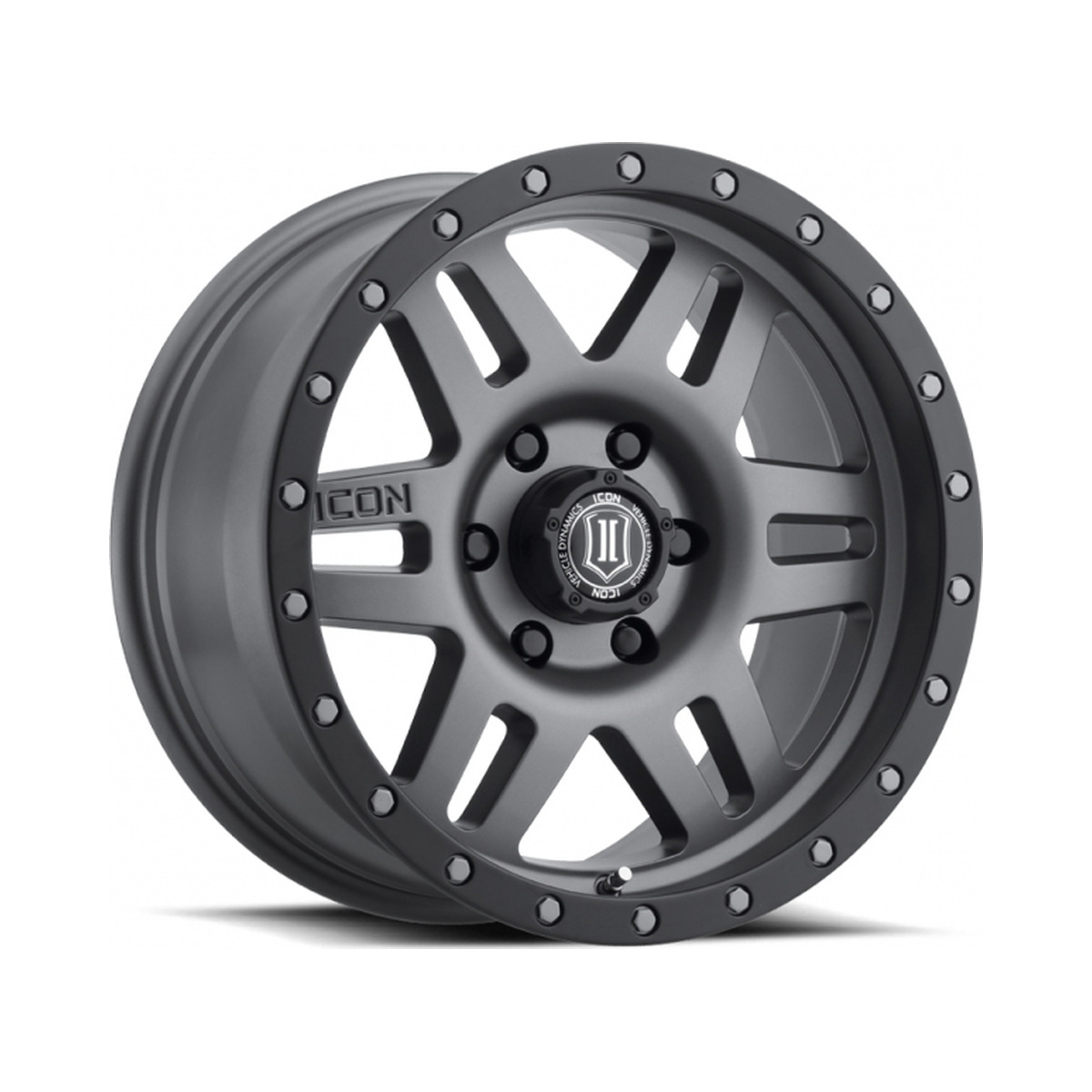 Shift into top gear with the ICON Alloys SIX SPEED! With a bold look and and “ICON-optimized” dimensions, these wheels will increase both the form and function of your Jeep, truck, or SUV. Staying true to the ICON Alloys approach, the SIX SPEED has been engineered to maximize caliper clearance and optimize wheel position for un-hindered suspension travel and steering function. Backspace dimensions and wheel offset have been strategically developed to reduce scrub radius, improving all-around handling and ride quality and making a set of these wheels the perfect complement to an ICON Vehicle Dynamics suspension system.