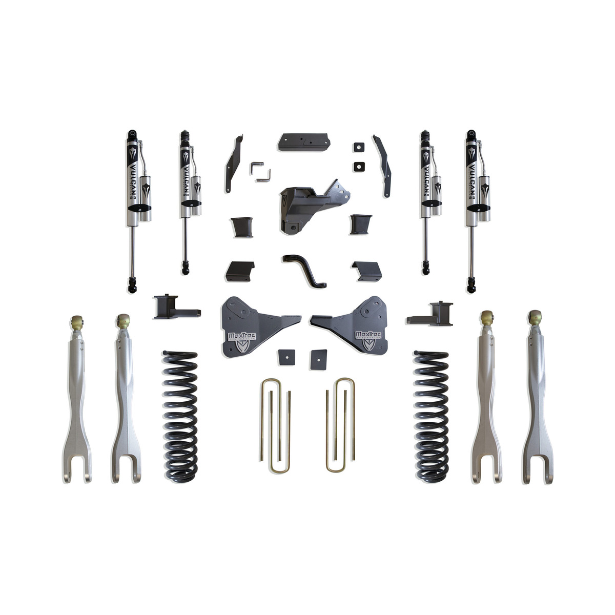 The MaxTrac 4″ Lift Kit with 4-Links and Vulcan Series Reservoir Shocks is the ultimate upgrade for off-road enthusiasts seeking superior performance and enhanced stability. Designed specifically for diesel models, this comprehensive lift kit includes everything necessary to elevate your vehicle, featuring high-quality diesel coils, robust forged aluminum 4-links, and essential components like a trac bar bracket, sway bar brackets, bump stop extensions, and a pitman arm.