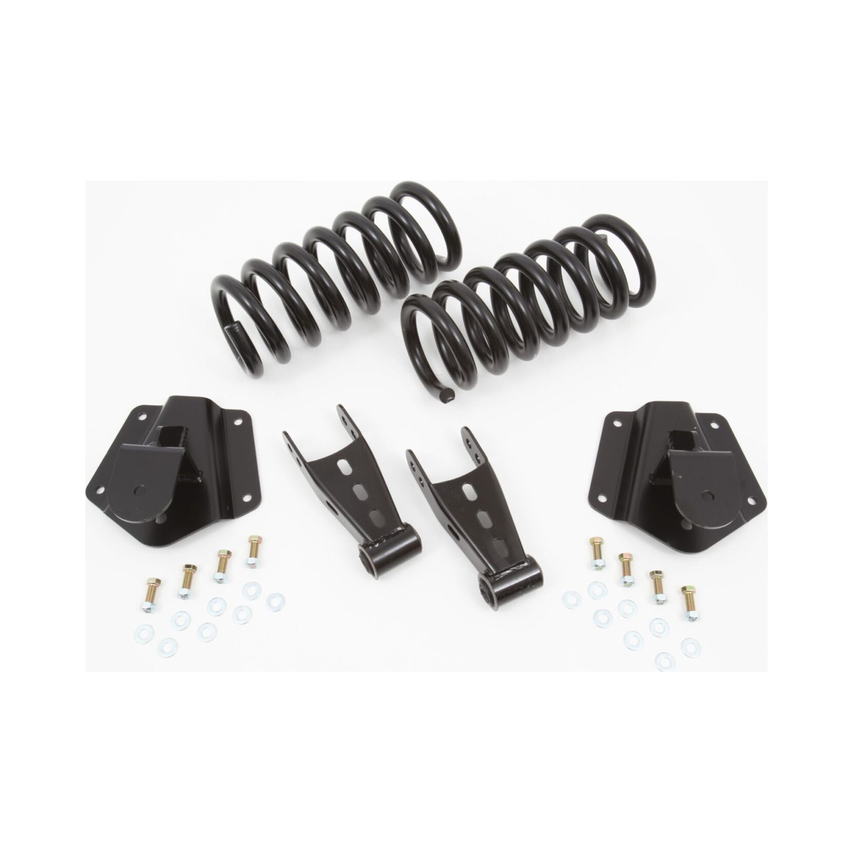 Kit Includes: (2) Front Drop Coils, (2) Rear Drop Hangers, (2) Rear Drop Shackles