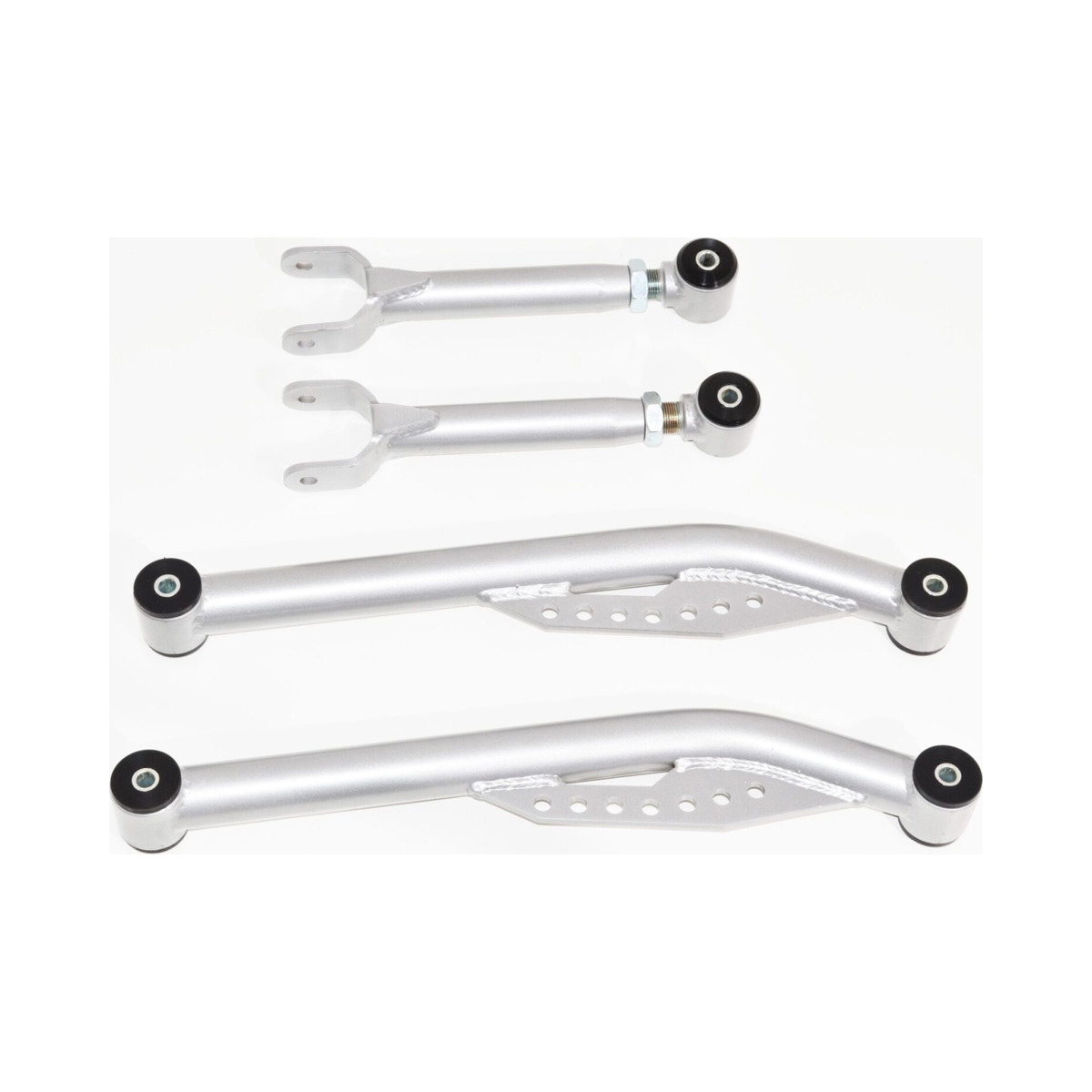 Kit Includes: (2) Upper Trailing Arms, (2) Lower Trailing Arms, (12) Bushings, & (6) Insert Sleeves