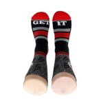 Synergy Manufacturing “Get It” Comfort Socks. These socks are rugged and ready for any trail or just for an average day at the office. They are made out of moisture wick fabric with odor blocker fibers. With double added heel material, you can be assured these socks won’t be getting those annoying holes in them.