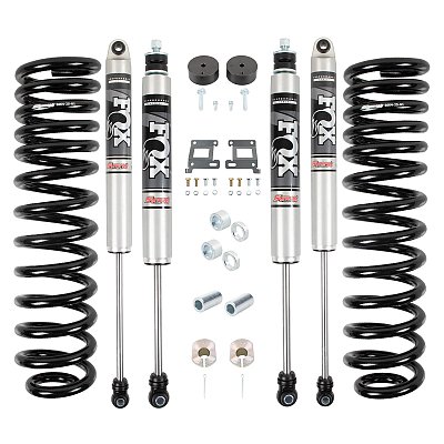 (1) 8663-25 2.5″ Leveling Springs, Pair (2) Fox 2.5 Front IFP / HTO Smooth Body Shocks (2) Fox 2.5 Rear IFP / HTO Smooth Body Shocks (1) 8657-01 1″ Front Bump Stop Spacers (1) 8612-24 Caster Sleeve Kit (1) 8673-01 Sway Bar End Link Spacer Kit (1) 8682-01 Front Brake Line Relocation Brackets (1) 8650-01 Fox Shock Eyelet Sleeve |