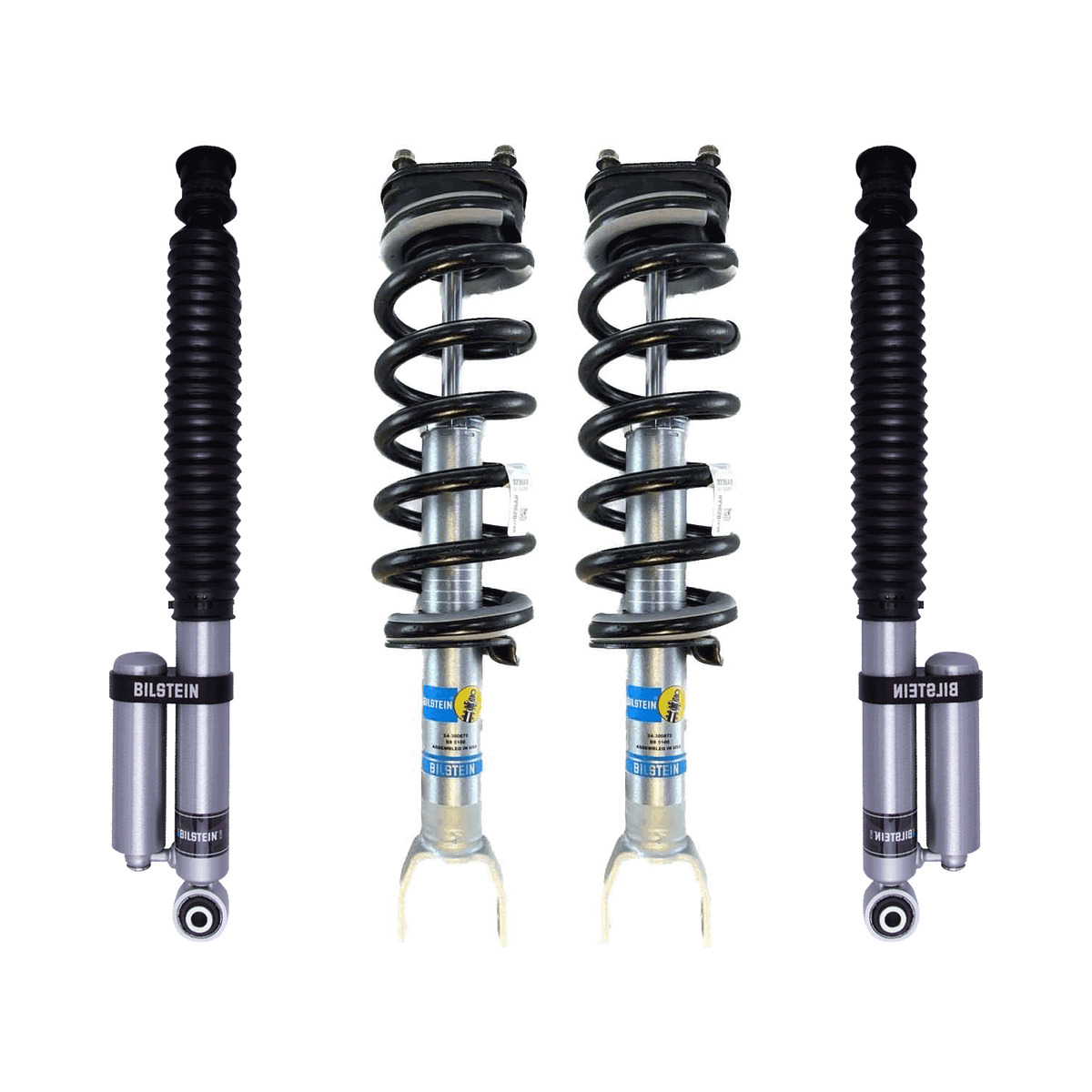 Includes: 2 Bilstein 5100 Shocks 24-300872 (old part: 24-232203), 2 Mopar Coils, Top Mounts (OEM quality or better) and all necessary bushings, hardware, 2 Rear Bilstein 5160 Shocks Rear Left: 25-325102 and Rear Right: 25-316919.